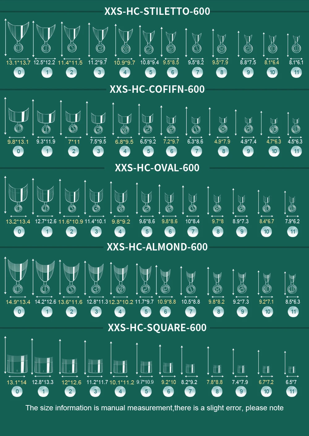 【SPECIFICATION】:Stiletto/Coffin/Square/Almond/Oval