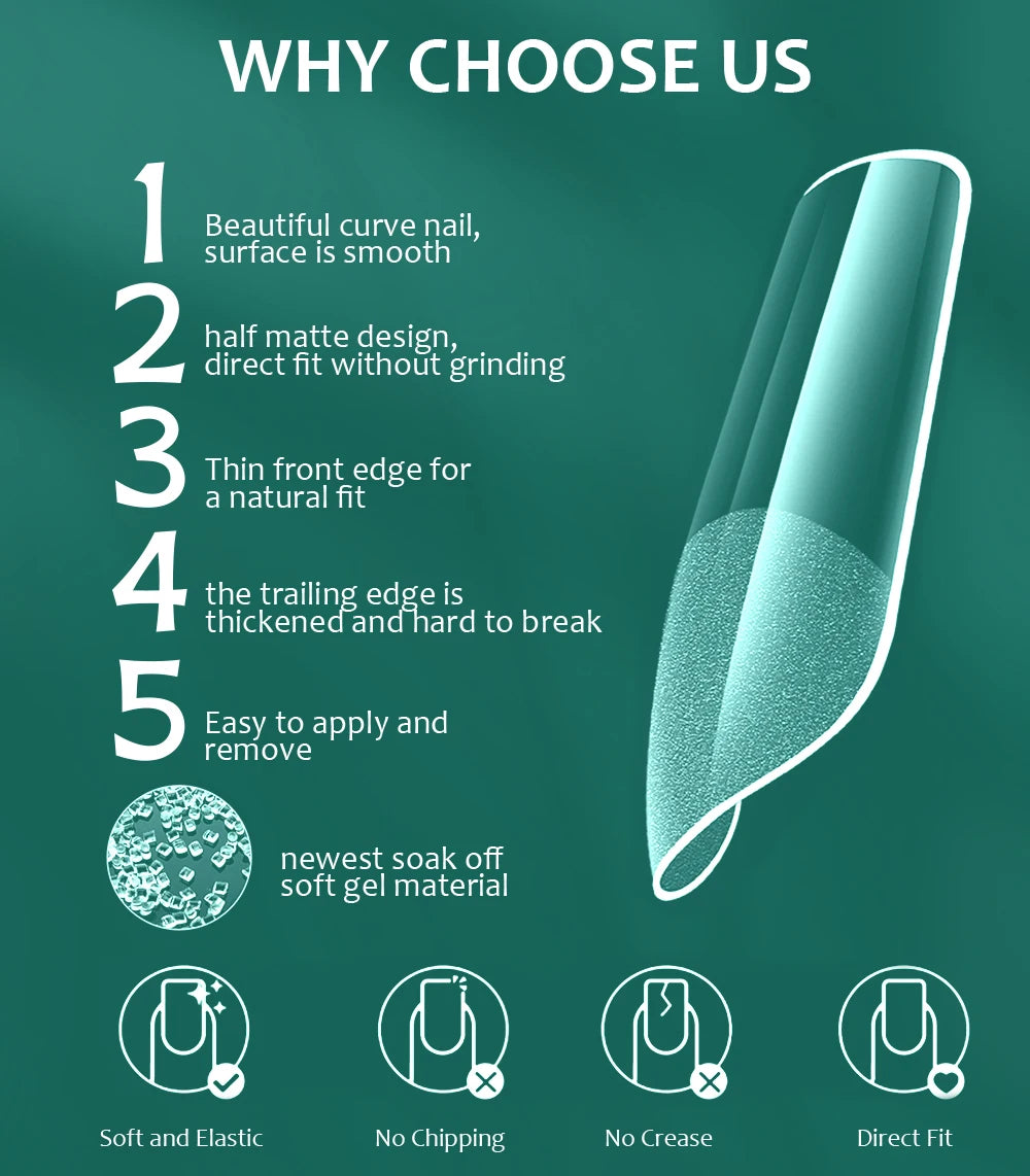 Nailpop 600PCS Soft Gel X Nail Tips Full Cover Coffin Stiletto Fake Nails Extra Short Almond Square Soak Off Gel False Nail Tips